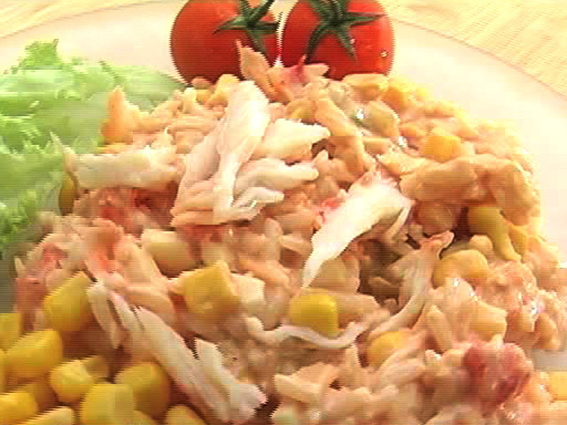 Рецепт простого и вкусного блюда.Состав: яйцо — 2 штуки;помидора — 2 штуки;краб — 8 кусочков;рис — 1 чашка;оливковое масло, бренди, лимонный сок, морская соль, кетчуп, чесночная соль, горчица, табаско.